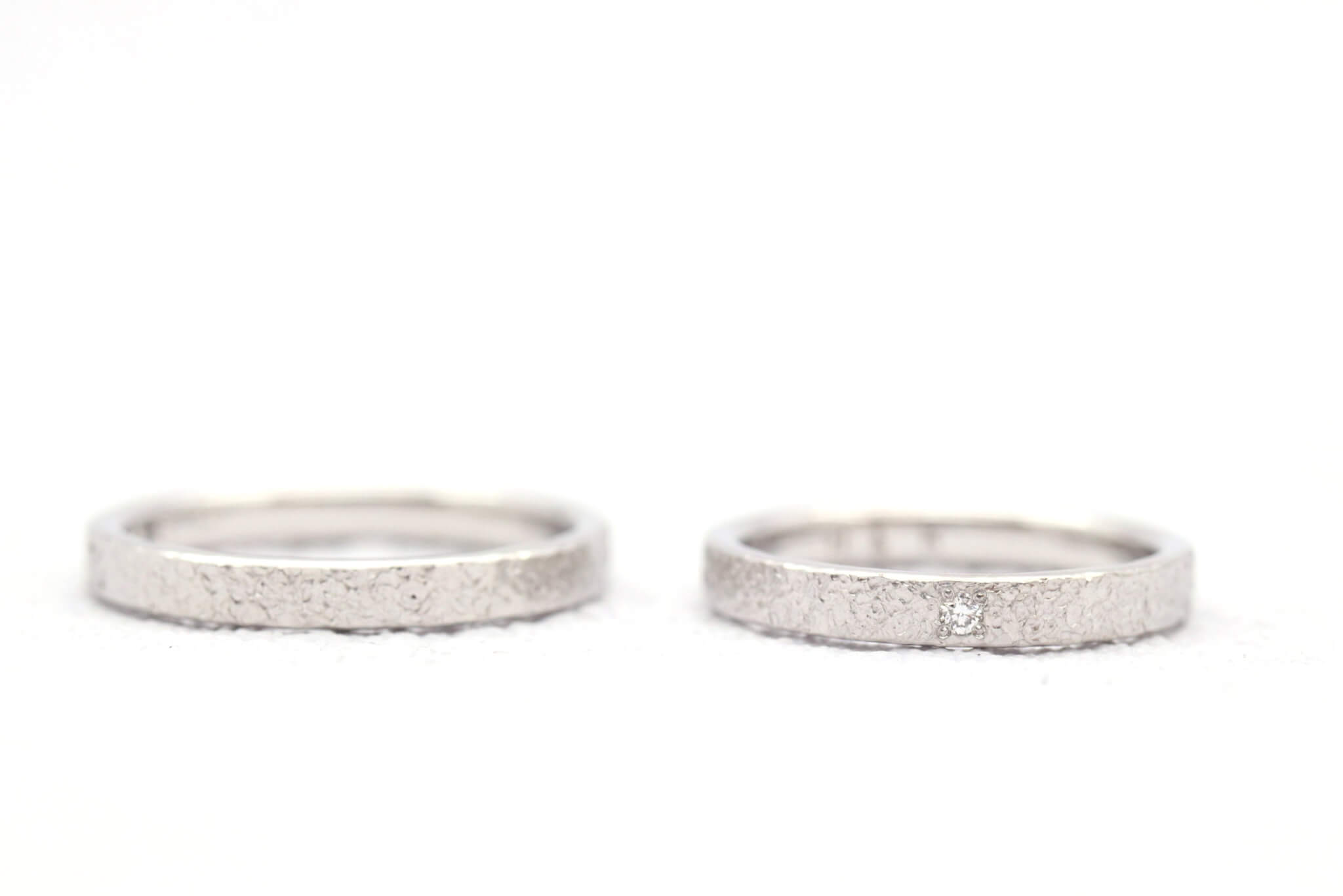 The "snowflake" hammered pattern on the platinum ring makes it shine just like falling snow. The ring is also accented with diamonds that sparkle in a different way.