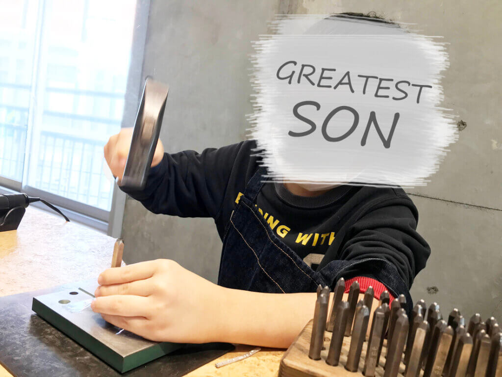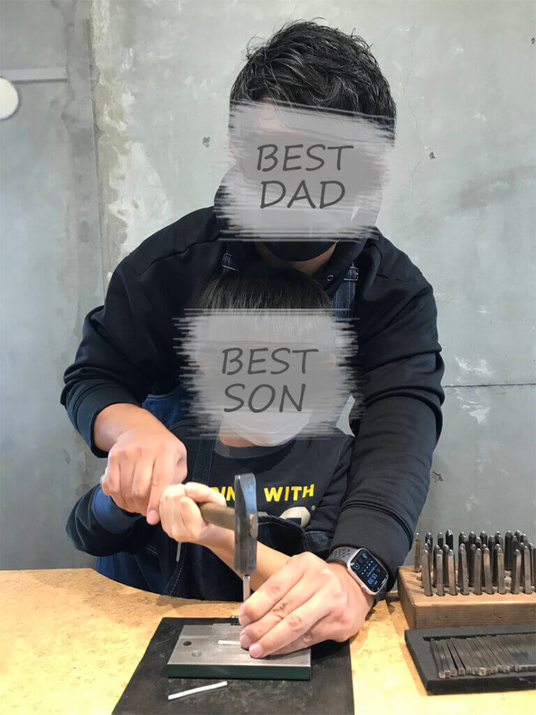 After practicing, they moved on to engraving the real thing. Initially, H-san had helped his son out.