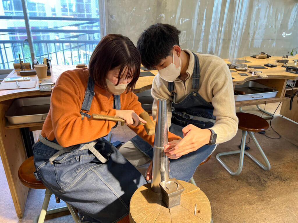 We experienced making matching silver bangles for our anniversary. The craftsman was kind enough to teach us how to make them, and the three of us had a great time chatting while we made them!