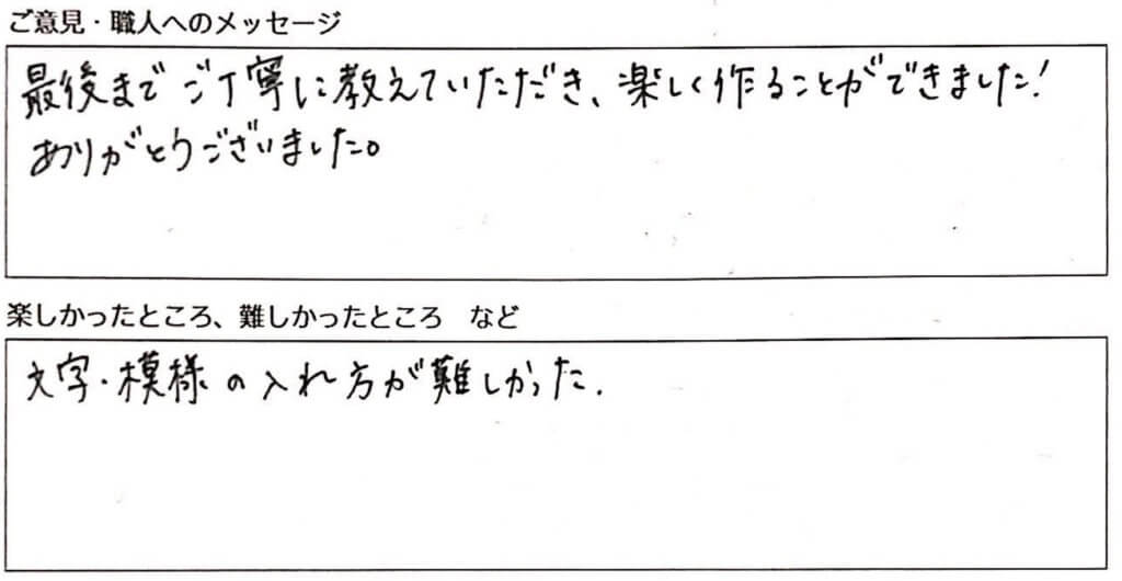 "Thank you for guiding us patiently throughout the workshop. It was a really enjoyable experience!"