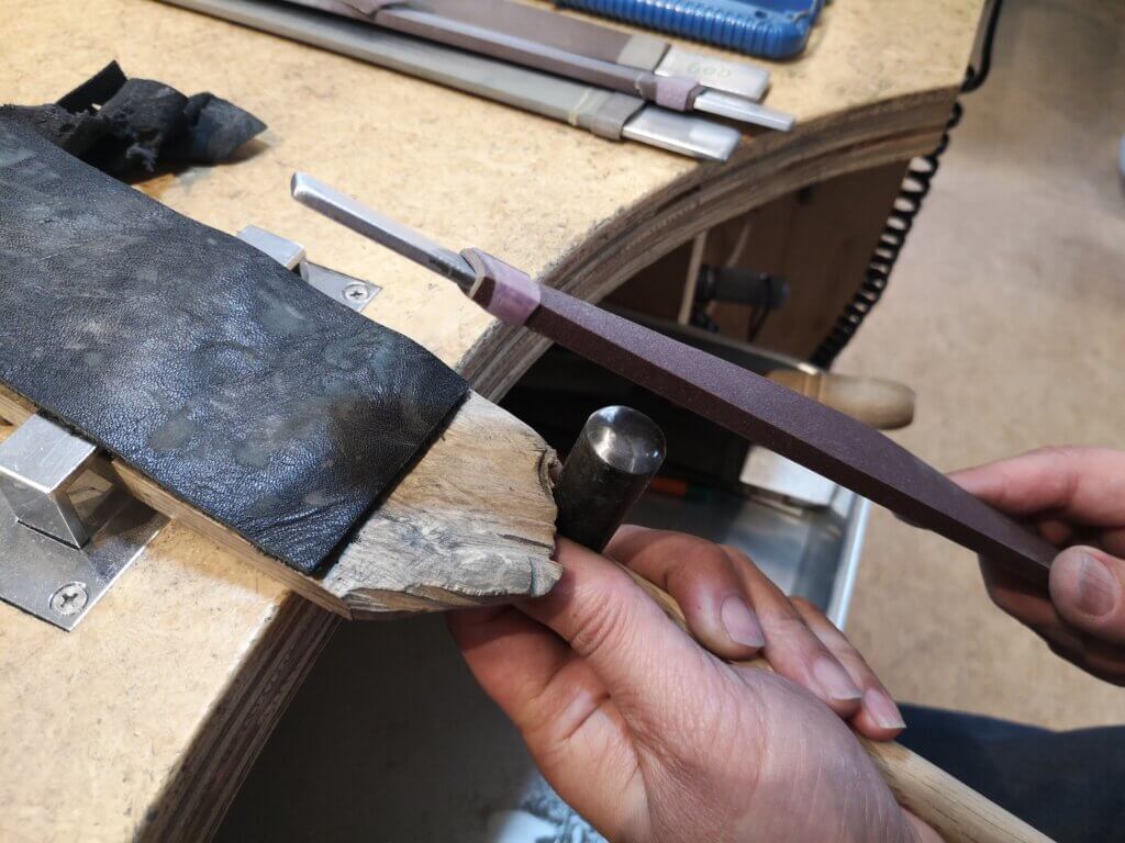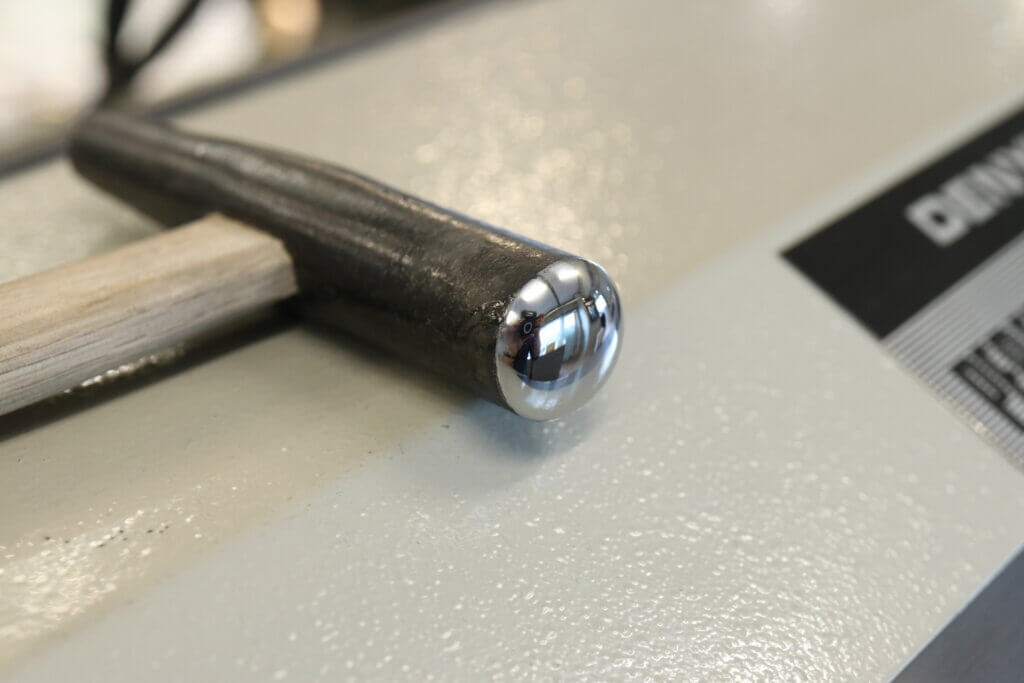 The surface of the hammering implement after purchase is distorted if left as it is, so sandpaper is used to shape the surface and remove any scratches.