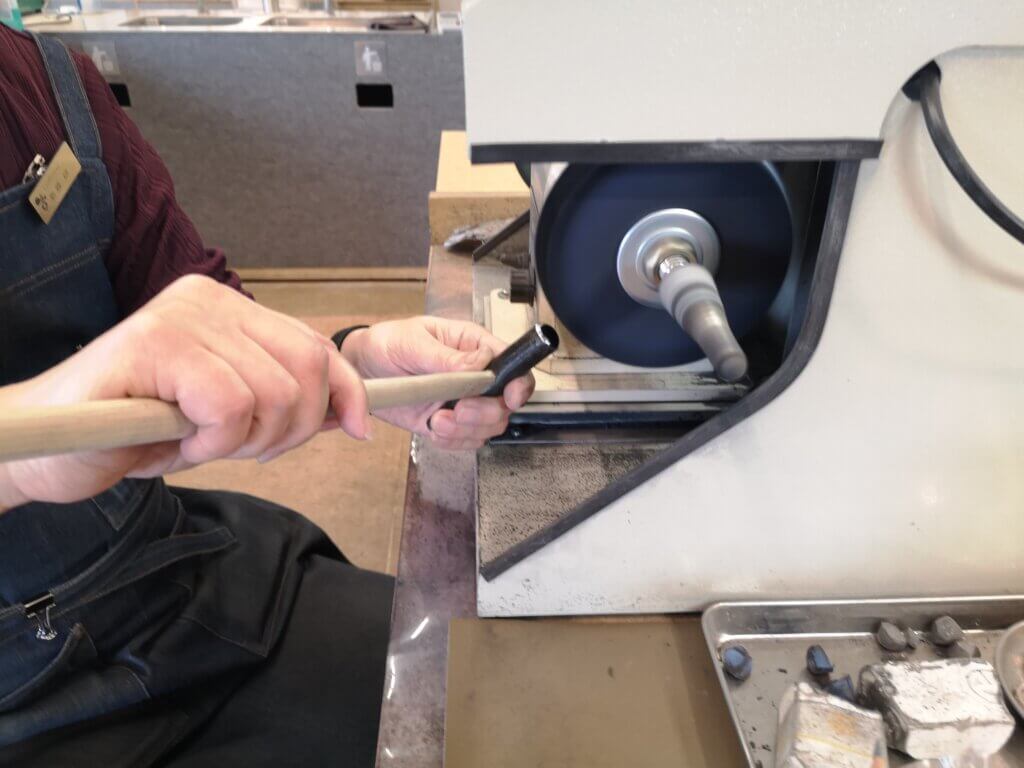 After applying sandpaper up to #1000 (fine sandpaper), it is time to buff and polish.