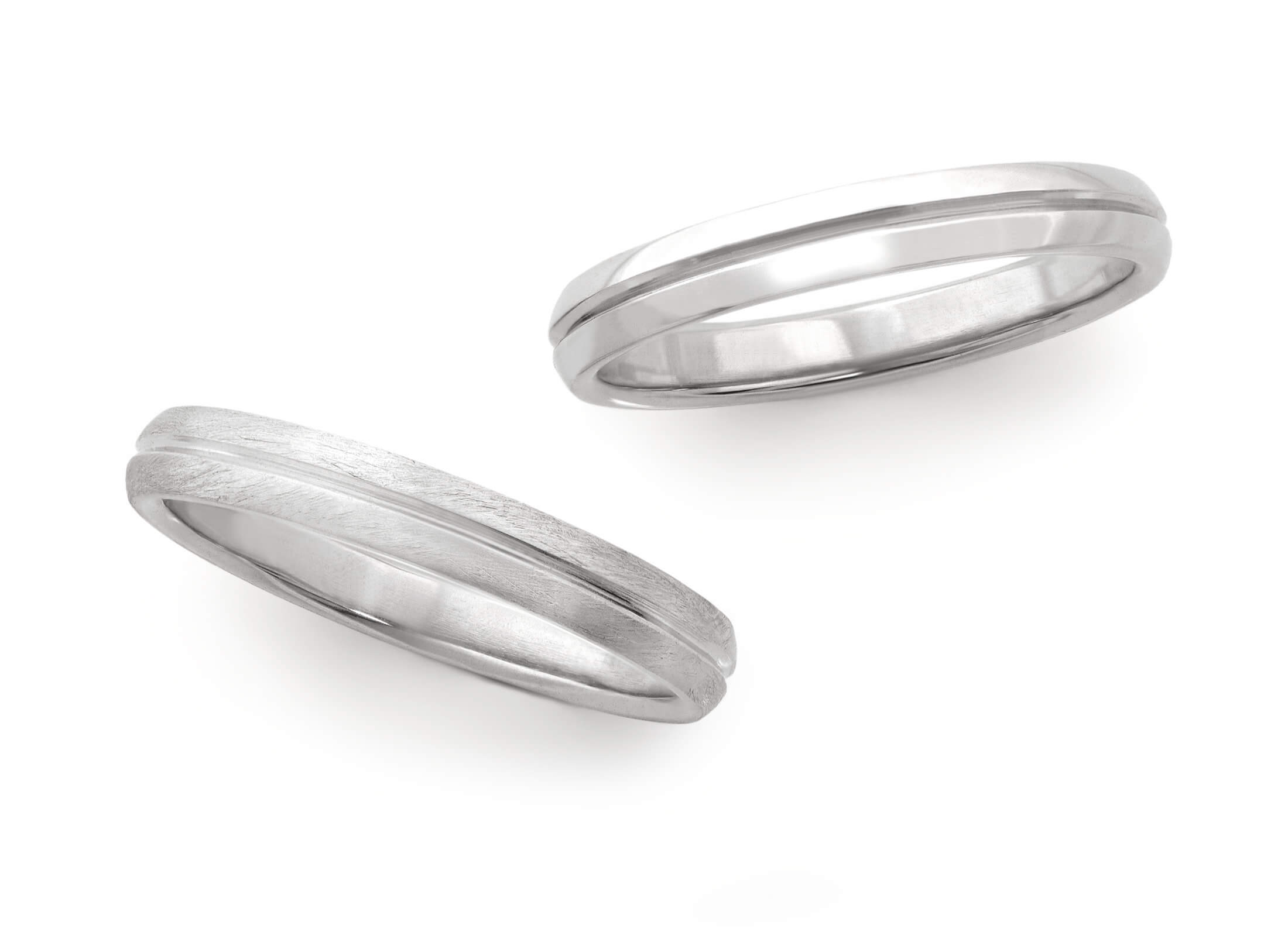 国内で一番人気のあるプラチナで使った手作り結婚指輪です。つや消し&つやありのペアでもお揃い感が出ます。