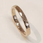 人気のシャンパンゴールドを使って、一番人気の鎚目仕上げにした手作り結婚指輪です。鎚目の仕上げは光をランダムな方向へ反射して、きらきらと輝く美しい指輪です。