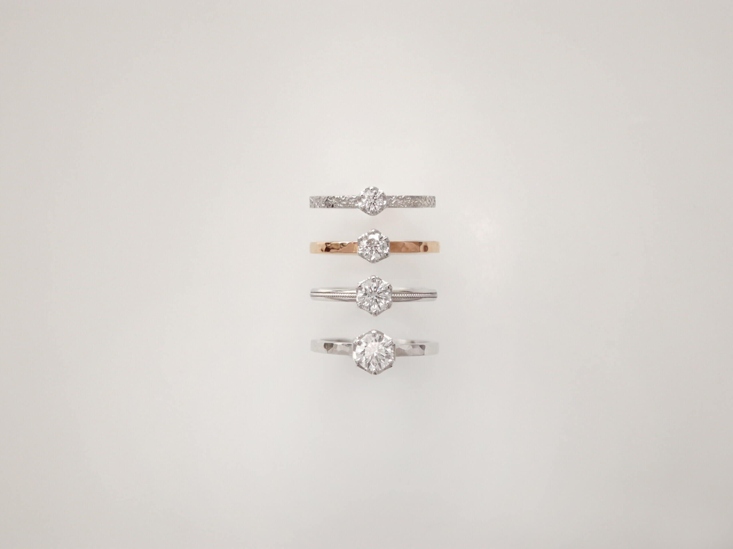 豊富なオプションにより、お好みのデザインにカスタマイズできます。手作り指輪のワークショップで提供しているすべてのサービスを組み合わせることが可能です。