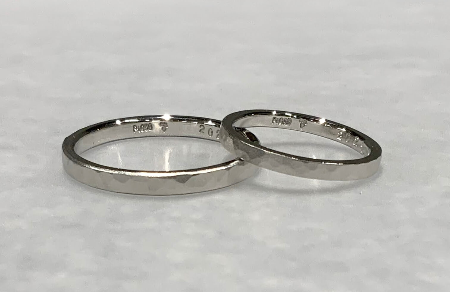 つや消しをした槌目の手作り結婚指輪