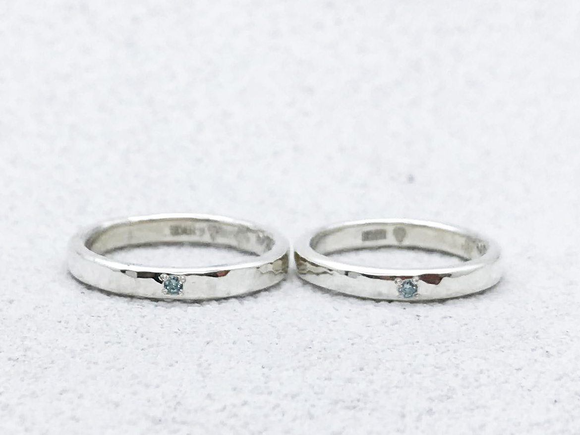アイスブルーのダイヤモンドがお揃いのペアリングです。アイスブルーダイヤモンドの煌きは、槌目の輝きに負けません。 アイスブルーダイヤモンドが輝く、槌目のペアリング槌目のシルバーリング() 槌目 シルバー ダイヤモンドオプション 手打ち刻印 幅2.8mm ¥27,500槌目のシルバーリング(写真左) 槌目 シルバー ダイヤモンドオプション 手打ち刻印 幅2.8mm ¥27,500() ¥https://www.stg.mitubaci.co.jp/news/5691/ 投稿ナビゲーションタンザナイトとアクアマリンのペンダントつや消しされたマットゴールドのバングル