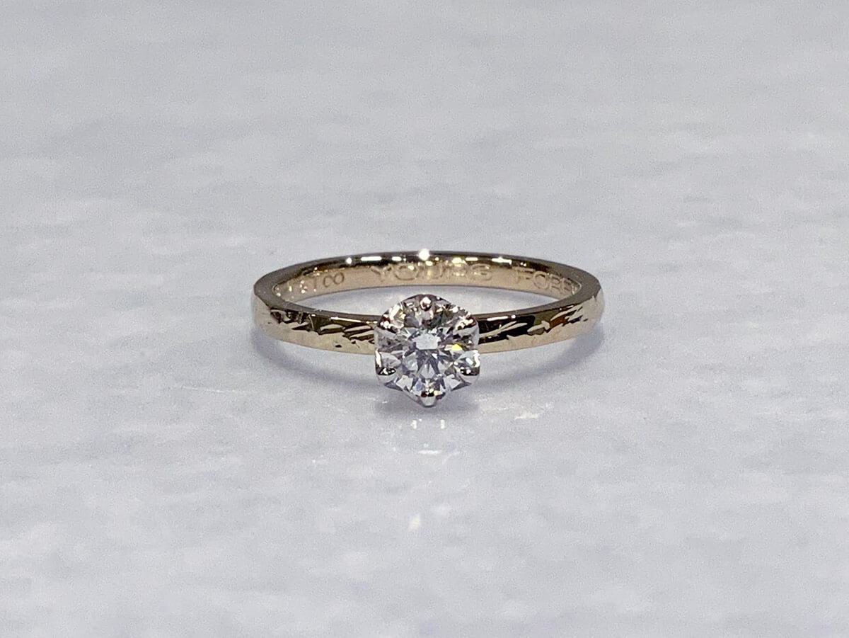ステラという仕上げの婚約指輪です。華やかな輝きを放つ仕上げです。ステラ仕上げの婚約指輪ステラ仕上げの婚約指輪() ステラ K18シャンパンゴールド ダイヤモンド 0.3ct 機械彫り 幅1.7mm ¥247,500() ¥() ¥ 投稿ナビゲーションサイドにラインを入れたプラチナリングツイスト仕上げの婚約指輪