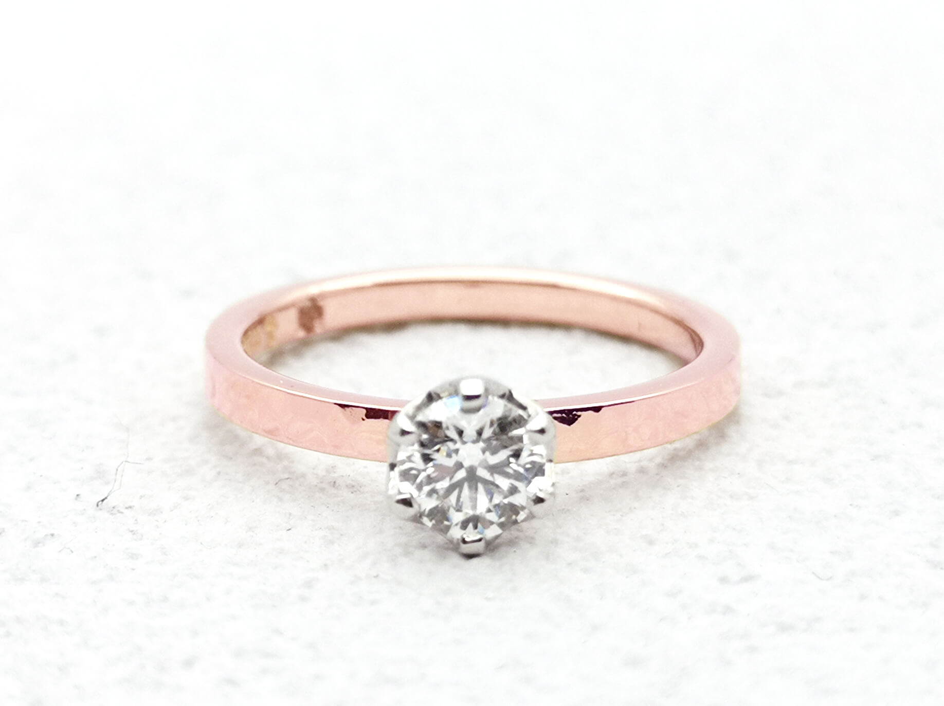 ピンクゴールドがきらきらと光る婚約指輪
