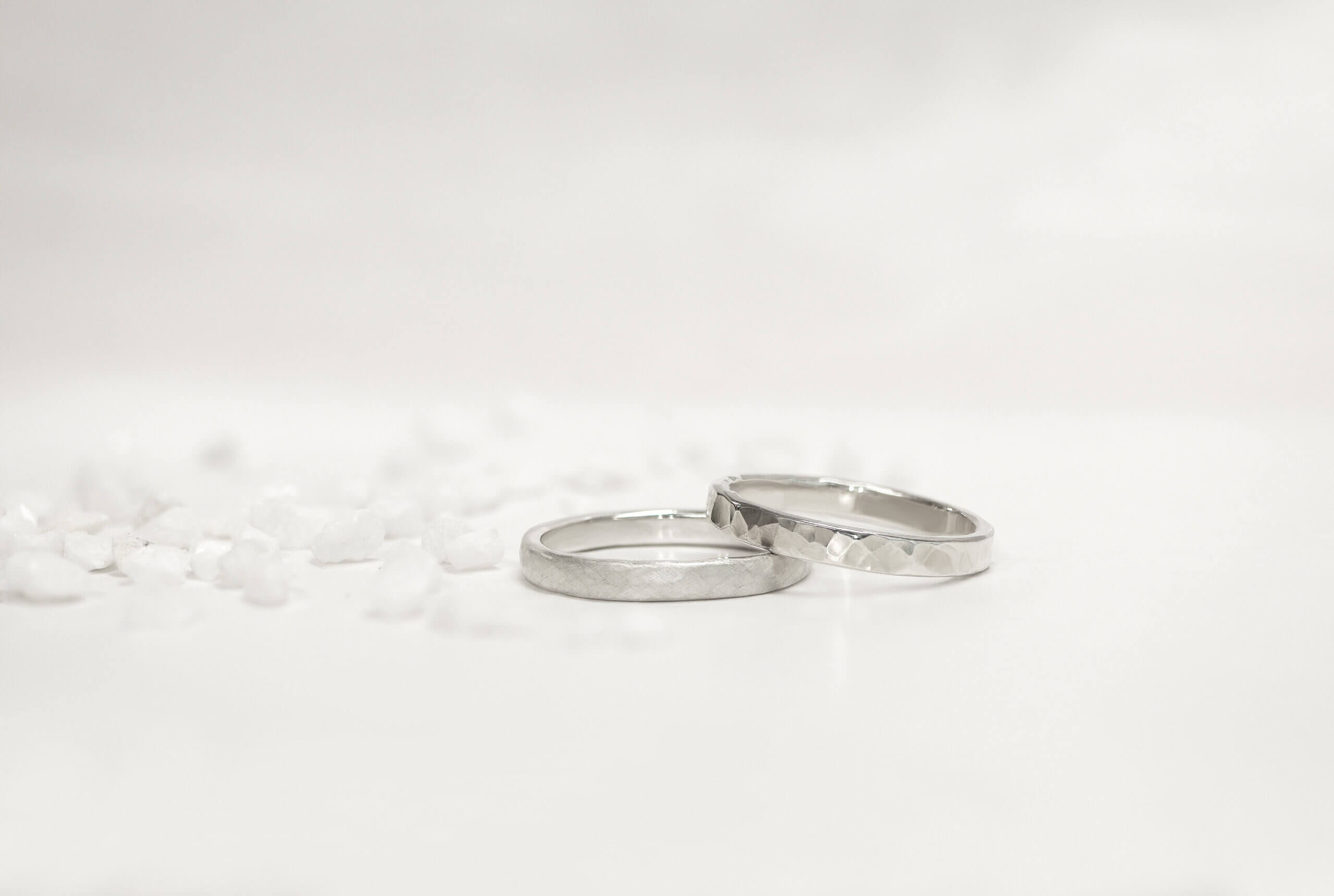 日本で結婚指輪の素材として一番人気のあるプラチナでお作りいただいた槌目の手作り結婚指輪です。同じ槌目の模様でも、つや消しをすると雰囲気がかわります。同じ槌目であれば、つや消し&つやありのペアでもお揃い感が出ます。プラチナで作る槌目の手作り結婚指輪槌目ブラストの結婚指輪(写真左) 槌目ブラスト プラチナ950 機械彫り 幅2.5mm ¥77,000槌目の結婚指輪(写真右) 槌目 プラチナ950 機械彫り 幅2.5mm ¥77,000() ¥ 投稿ナビゲーション槌目の結婚指輪シンプルなイエローゴールドの手作り結婚指輪