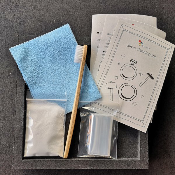 공방에 방문하지 않고도 수제 주얼리를 아름답게 유지하고 싶다는 요청에 부응하여 집에서 사용할 수 있는 오리지널 클리닝 세트를 준비했습니다. 내용물은 모두 장인이 실제로 사용하는 것과 동일한 것을 준비하였으므로 안심하고 사용하실 수 있습니다.