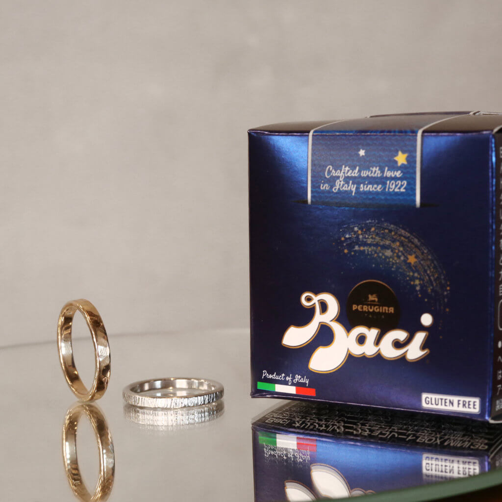 MITUBACI의 장인・직원들은 모두 초콜릿을 좋아합니다. 발렌타인데이의 즐거운 분위기에 편승하여, 발렌타인데이까지 결혼반지(49,500엔 이상)를 한 쌍으로 제작하신 고객님들께 Baci 초콜릿을 선물로 드립니다.