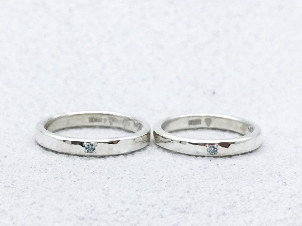 실버 925(폭 2.8mm 내외) 망치 눈 + 아이스 블루 다이아몬드