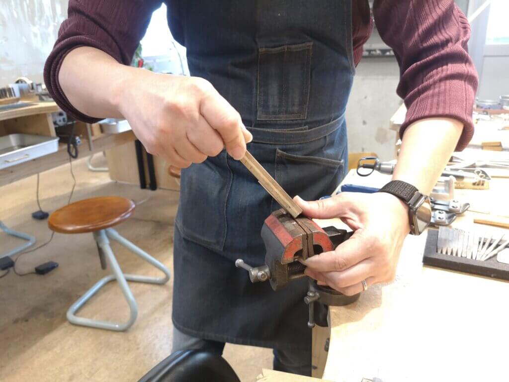 각인을 찍습니다. 워크샵에 참가하시는 분은 사전에 은색 판으로 각인 연습을 해 주시면 됩니다. 처음이신 분들도 괜찮습니다!