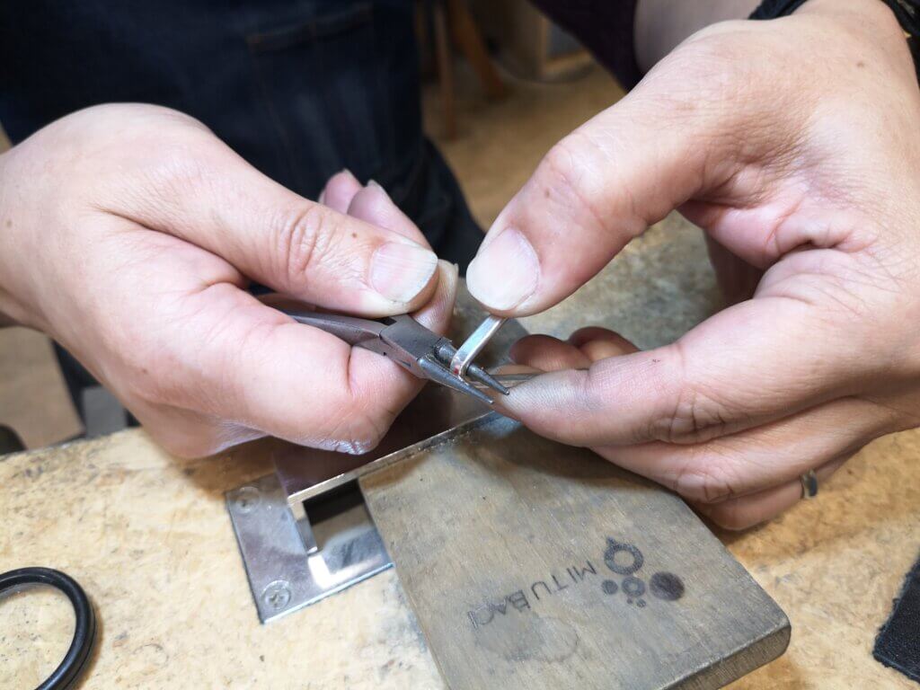 야트코를 사용하여 타이핀 모양으로 다듬습니다. (장인이 가공합니다.)