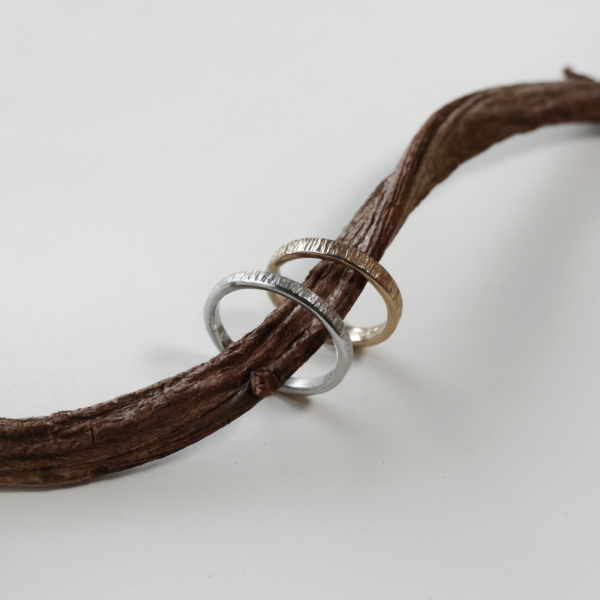樹木のような風合いの手作り結婚指輪
