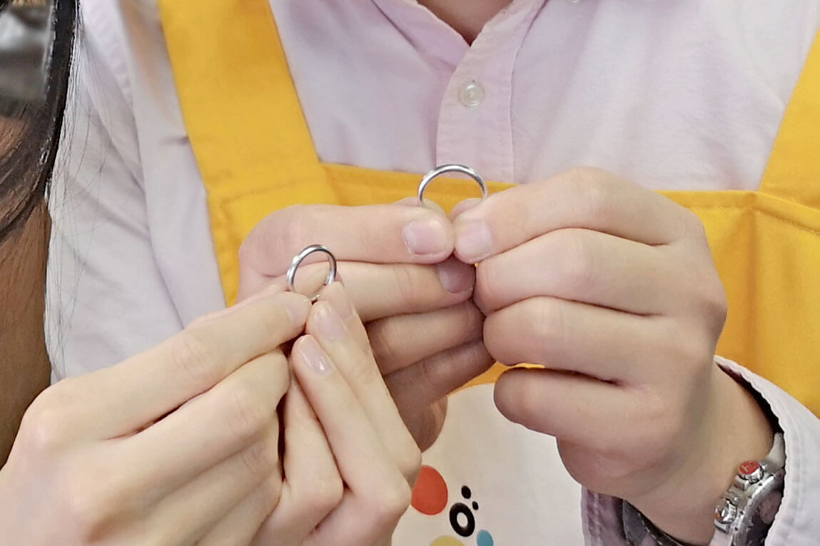 実際に作りだす前は自分達にもできるのか不安でいっぱいだったが、サポートがしっかりしていて作りだしたら、思った以上に素敵な指輪ができたのでよかった。