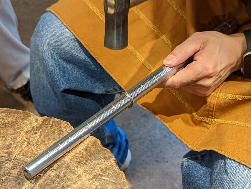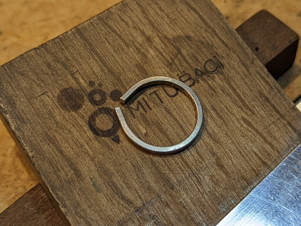 ロウ付して磨いたリングに模様をつけていきます。