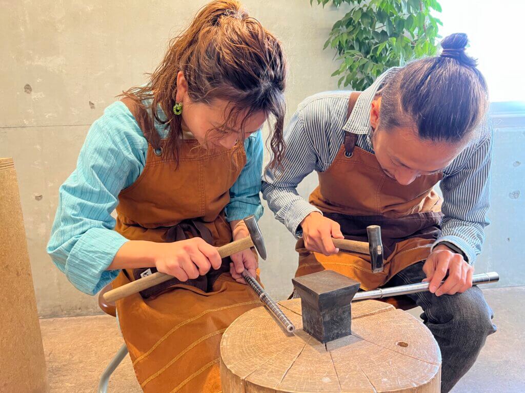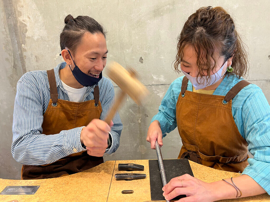 表面のテクスチャは専用の金鎚で打ち込みます。