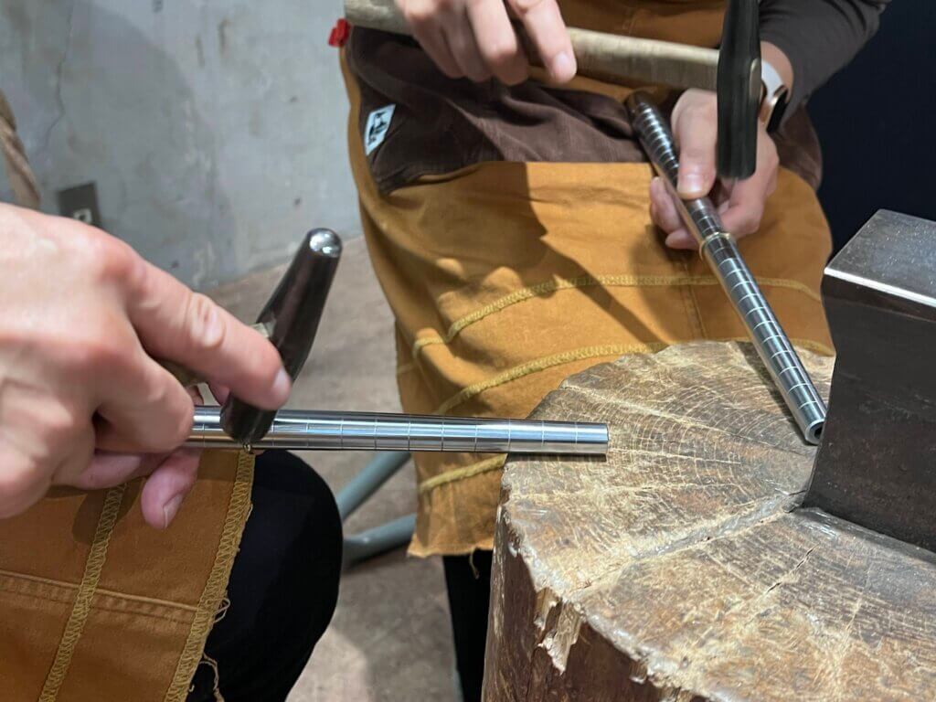 職人さんの説明が的確で、とてもわかりやすく、製作意欲を掻き立ててくれ、また我々の急な思いつきにも柔軟に対応していただき、完成に導いていく、見事なプロデューサーでした。溶接や磨き、叩く感触、だんだん出来上がっていくワクワク感、職人さんとの一体感と安心感、すべての瞬間が強烈に記憶に残ると思います。心より感謝しています。ありがとうございました。
