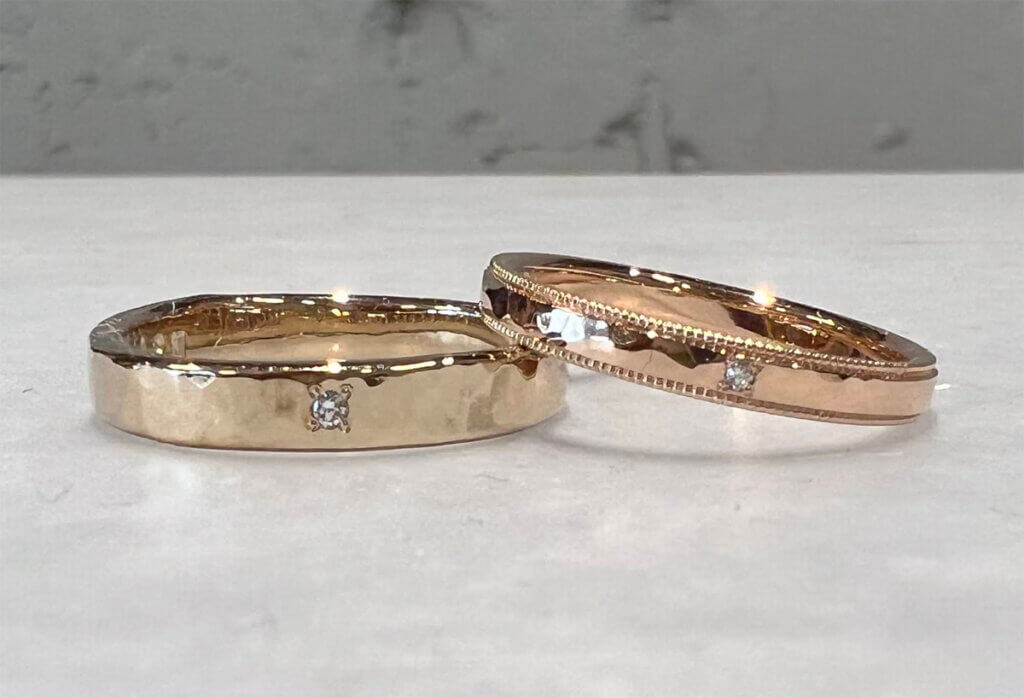 ・K18ピンクゴールド(2.5mm)槌目+ミル打ち(オーバル) + ダイヤモンド