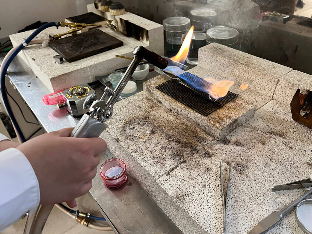 丸めたあとは、ロウ付け(溶接)を行います。
