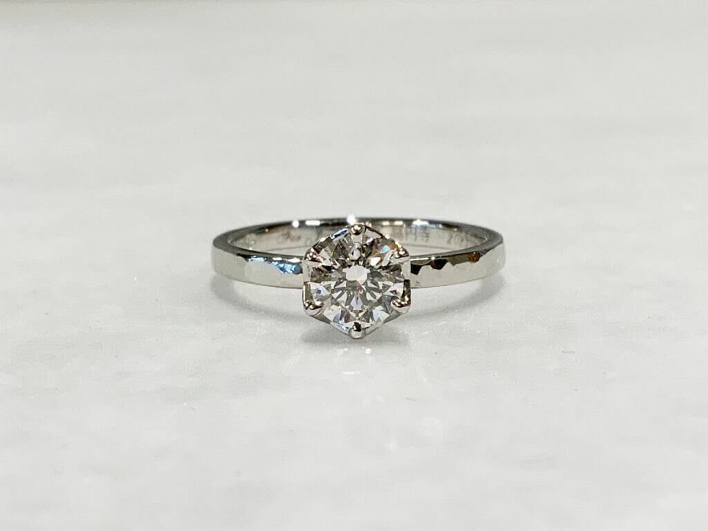 ・プラチナ950 0.5ct 婚約指輪 槌目 + レーザー刻印