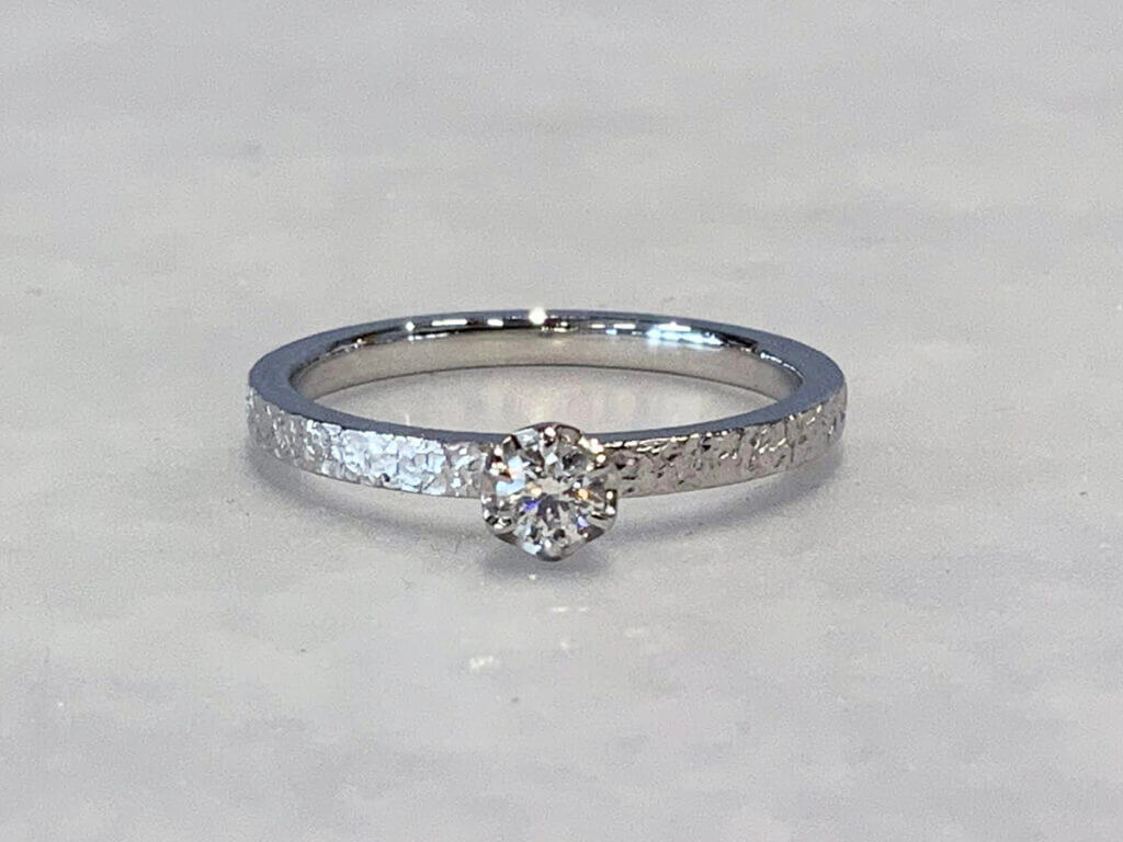 ・プラチナ950 0.1ct 婚約指輪 スノーフレーク + 機械彫り刻印