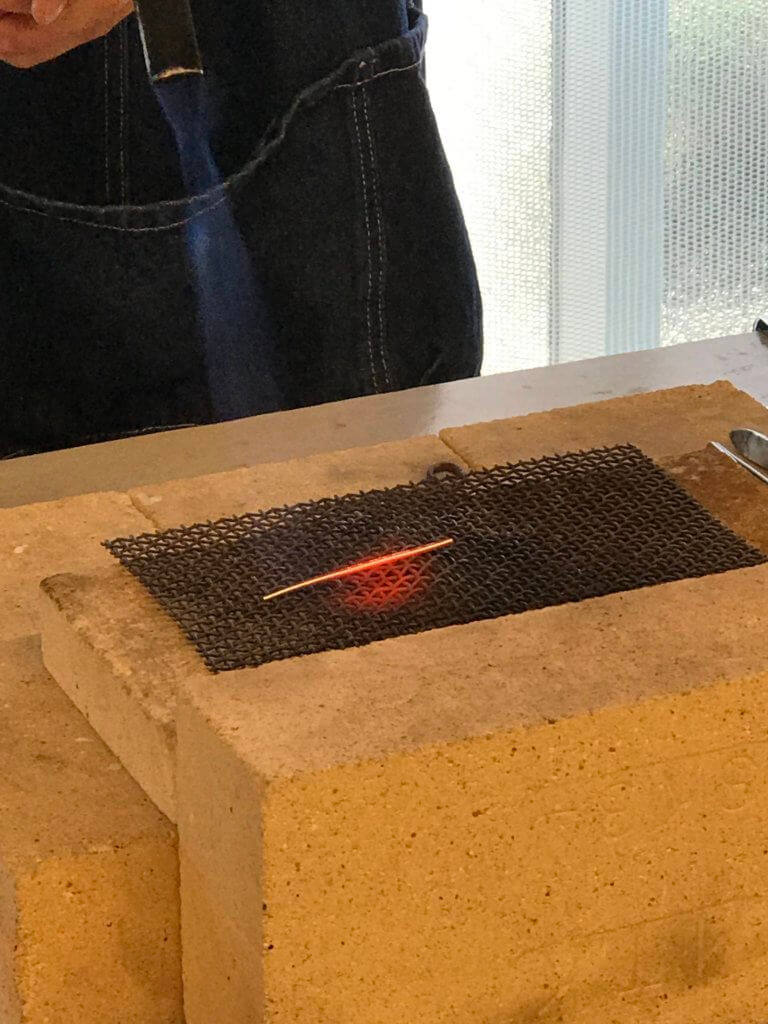 目の前で金属の棒が指輪の形になっていくのを体験していただきます。