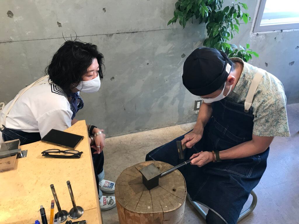 溶接して、磨いてからスノーフレークのテクスチャーを付けていきます。