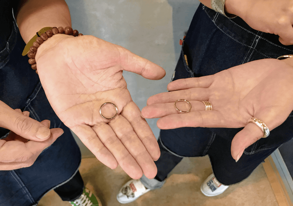 スノーフレークのテクスチャーで手作り結婚指輪をお作りいただいたS様をご紹介します