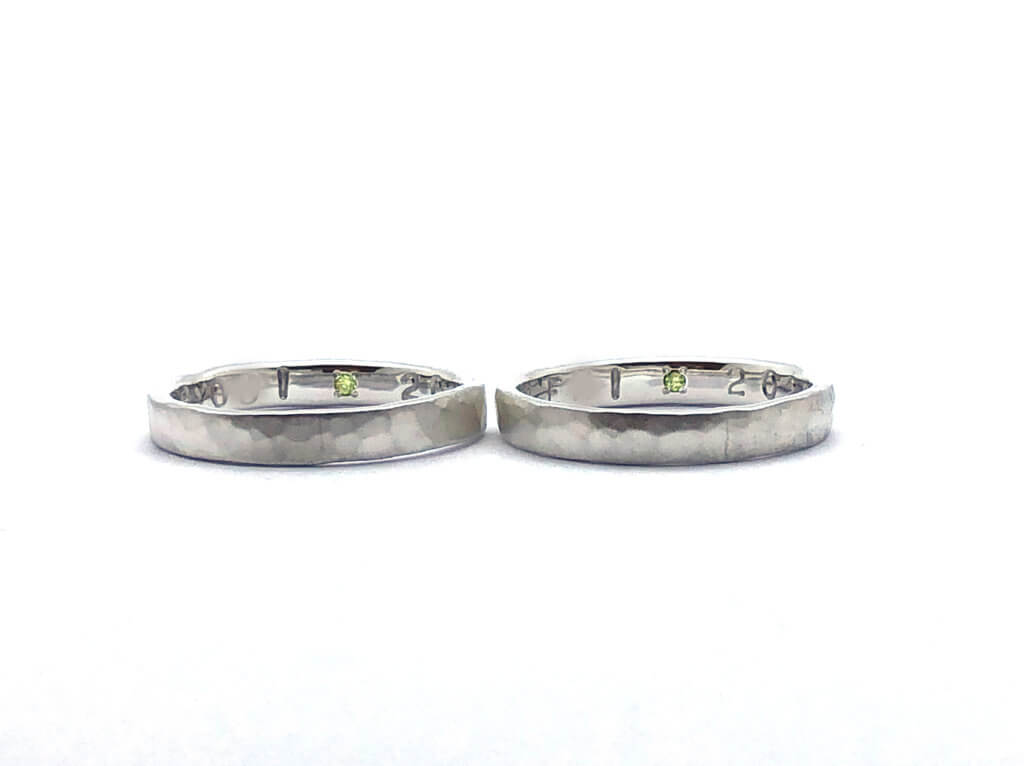 I様は、指輪の内側におそろいのグリーンダイヤモンドをお選びいただきました。