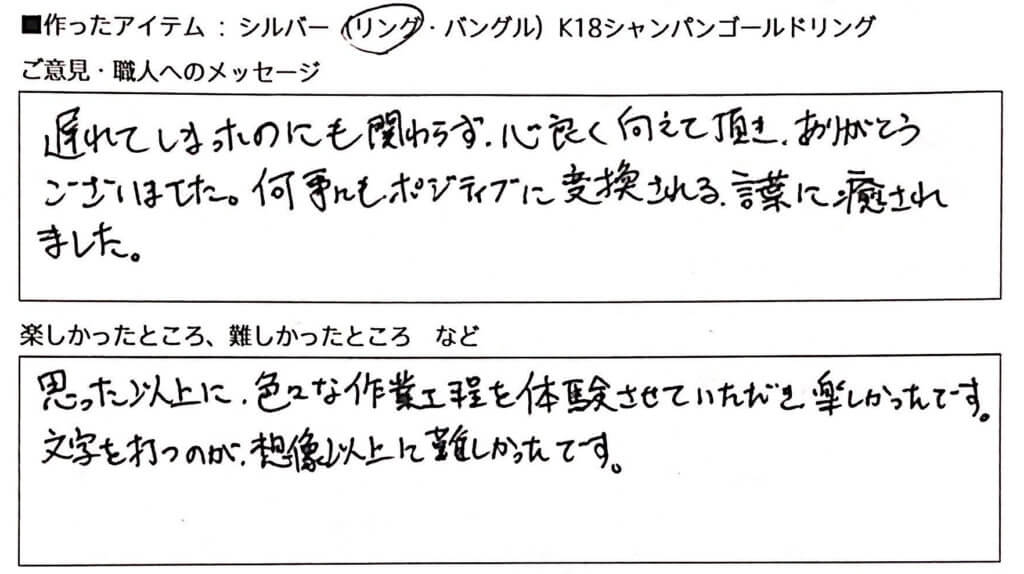 思った以上に、色々な作業工程を体験させていただき楽しかったです。