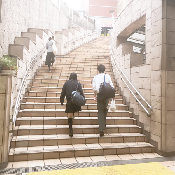 階段、もしくはその奥にあるエレベーターで地上にあがります。