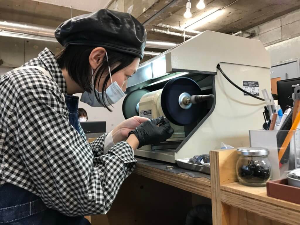 アトリエでは「バフ」よんでいる研磨するための機械です。