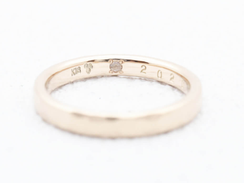 ・K18シャンパンゴールド(2.5mm幅)槌目ブラスト +ブラックダイヤモンド