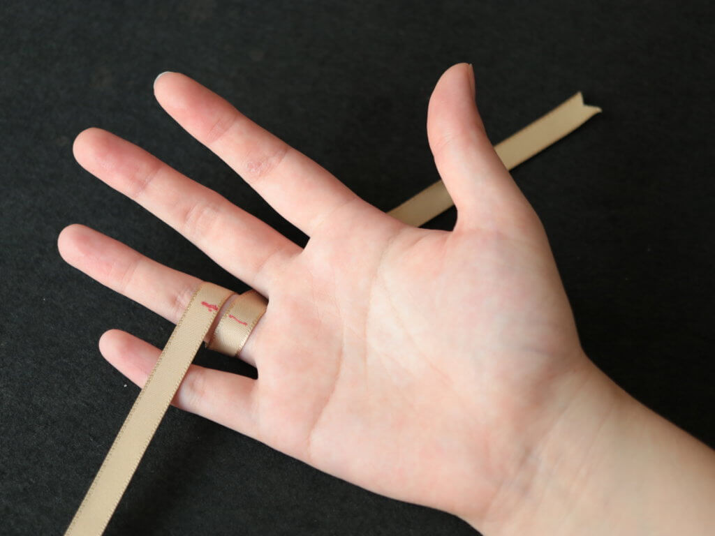 私は指の付け根が一番太いのでそこに巻きます。関節が一番太い方は関節に巻きます。