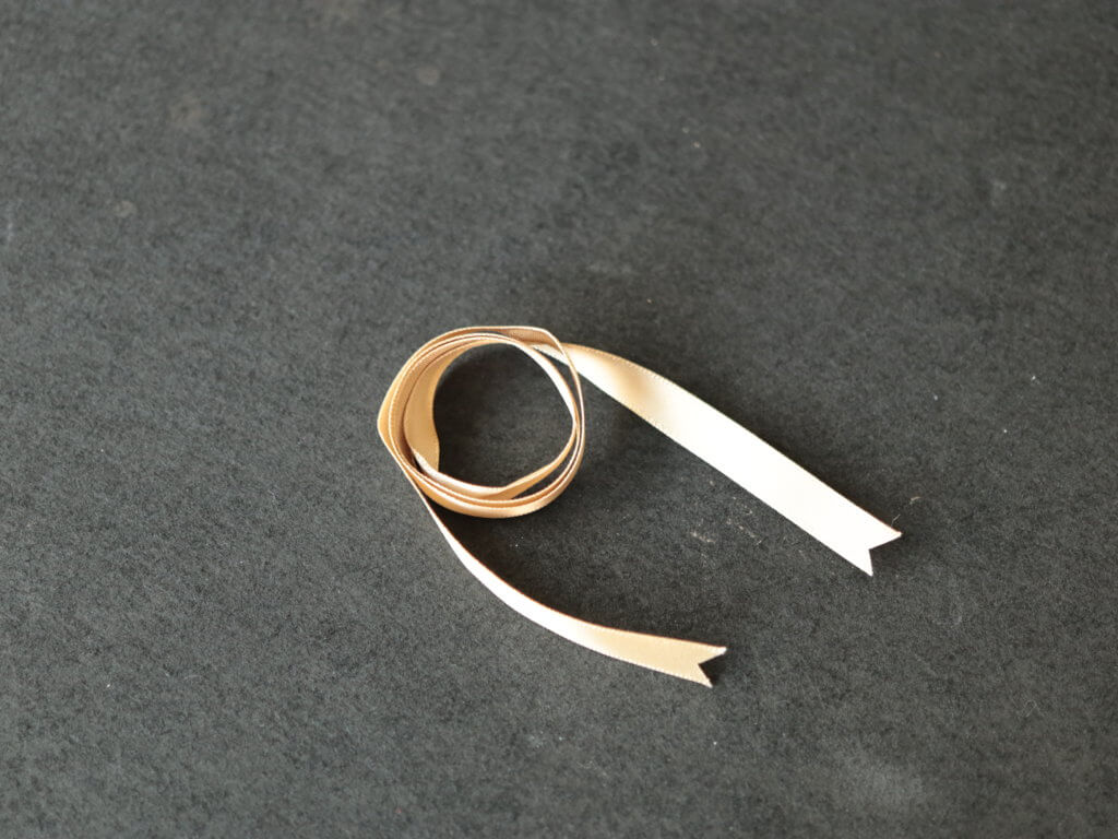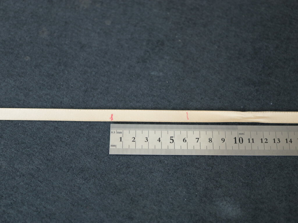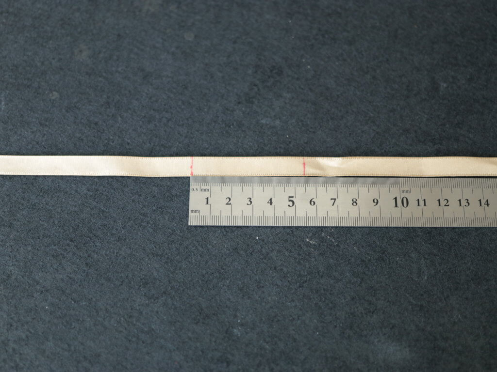 ということは、サイズは13~14号。どうやらリボンの幅が広すぎた様子。リボンは8mm幅です。