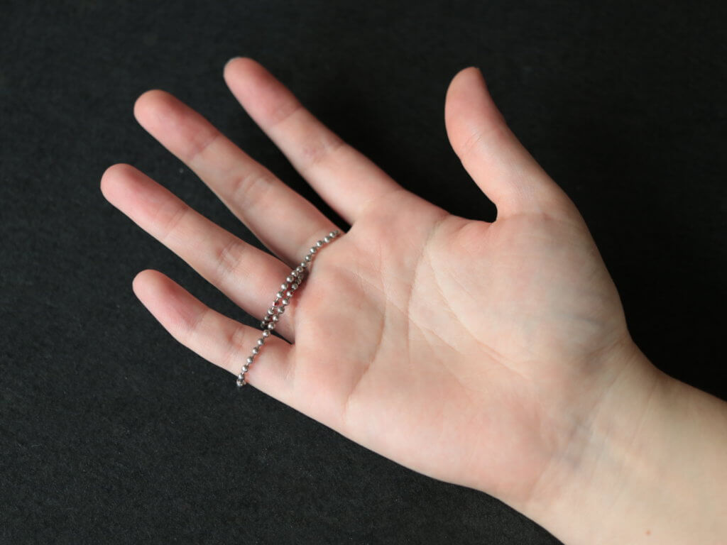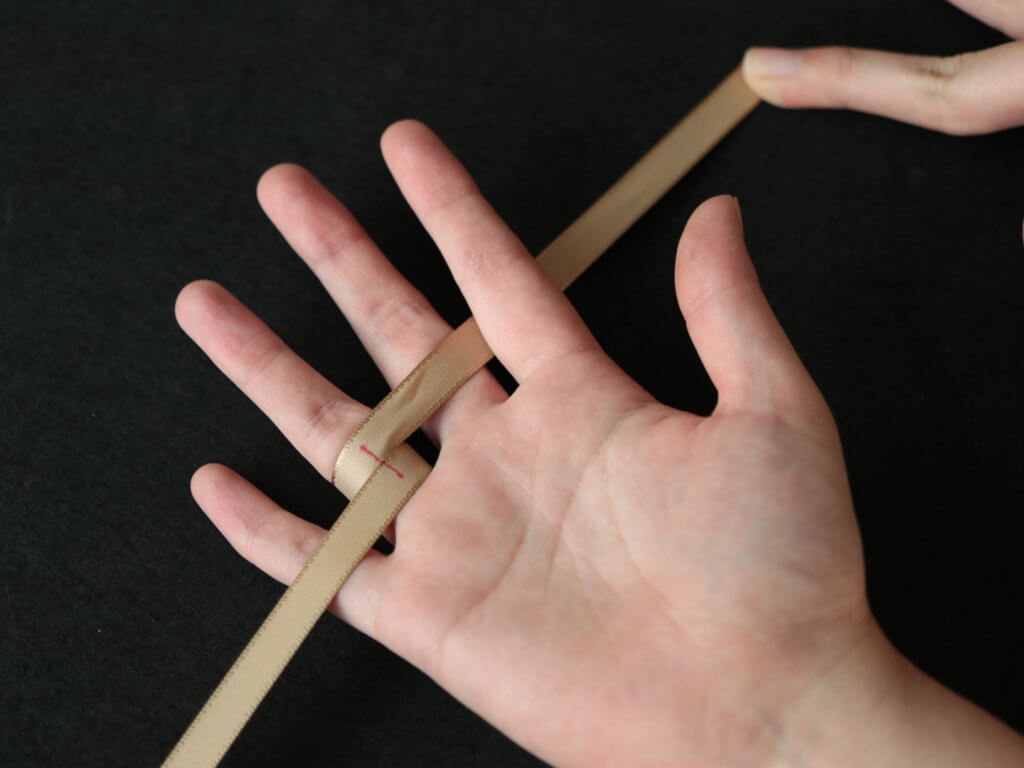 そんな時に自宅で簡単にできる測り方として、ネットでは指輪をつけたい指に糸や紐状の物を巻いて測る方法が紹介されています。これは糸を指に巻くことで自分の指の外周(指輪の内径)を測ってその長さで指輪のサイズを割り出すものになります。