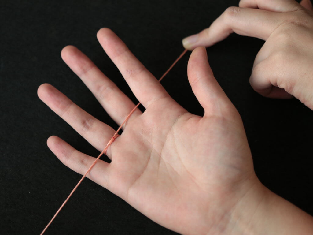 1.サイズを測りたい指の一番太いところに紐を巻きます