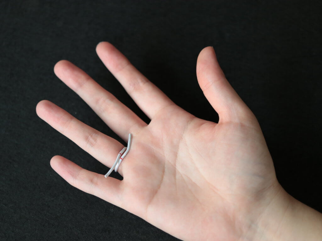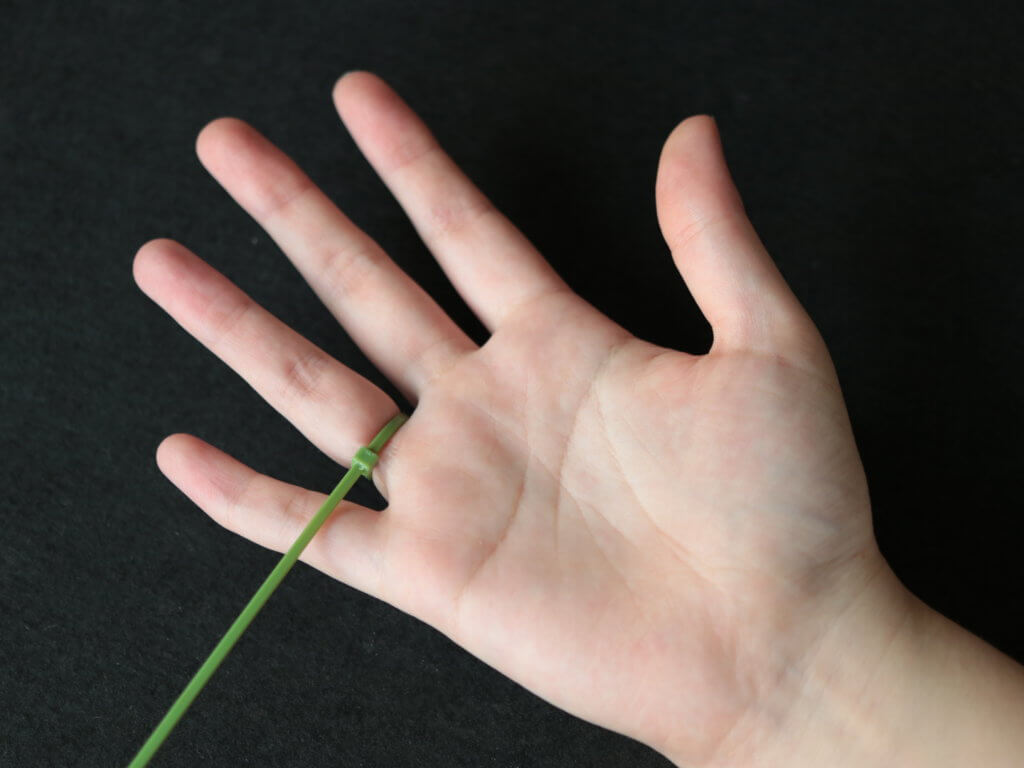 丸めて締めていく作業は簡単でした。ですが結束バンドの性質上、締めた後広がらないためキツくしすぎて指から抜けなりました。ちょっとリスキー