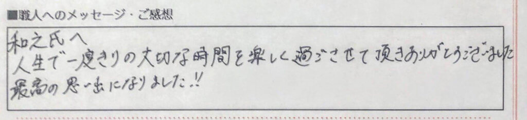 K様、楽しんでいただけて嬉しいです。ぜひまた奥様とご来店ください!