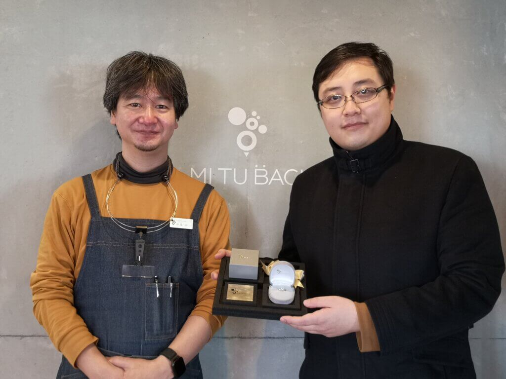 こちらの指輪は、サプライズで準備されているそうです。MITUBACIにはお1人で婚約指輪を作りにいらっしゃるお客様もたくさんいらっしゃいます。