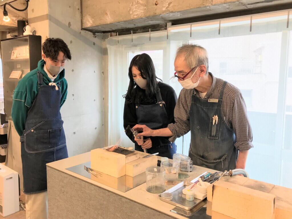 自分たちだけで作れるか不安なカップルも心配はいりません。創業以来、50年以上にわたって鍛造製法のスペシャリストとして指輪をつくり続けている熟練の職人たちが、二人を丁寧にサポートして、本物の職人が行うのと同じ製法で自分たちだけの指輪を製造することが可能です。もし少し失敗してしまっても職人がリカバリーしてくれます。「手作りだから、いまいち」と言われるようなことはありません。プロの職人がプライドをもって、美しい結婚指輪を作るお手伝いをいたします。