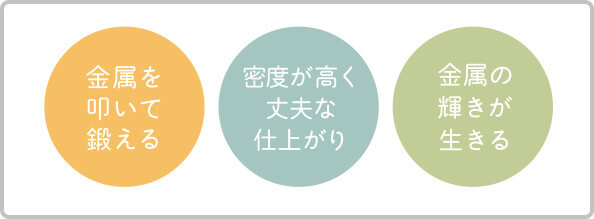鍛造製法は、金属を叩いて鍛え、丁寧に形を作っていく製法です。