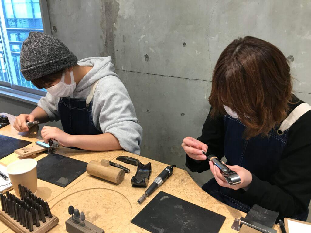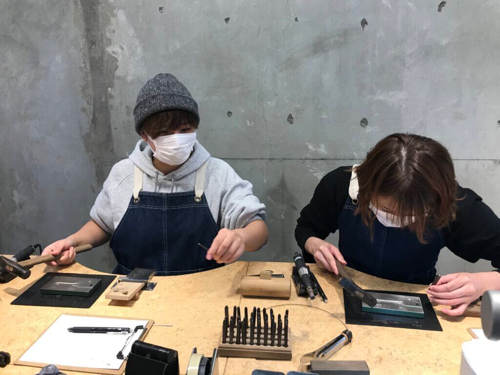 お2人は槌目のテクスチャを選ばれたので、磨いたあとに先端の丸い金槌で模様を付けていきます。