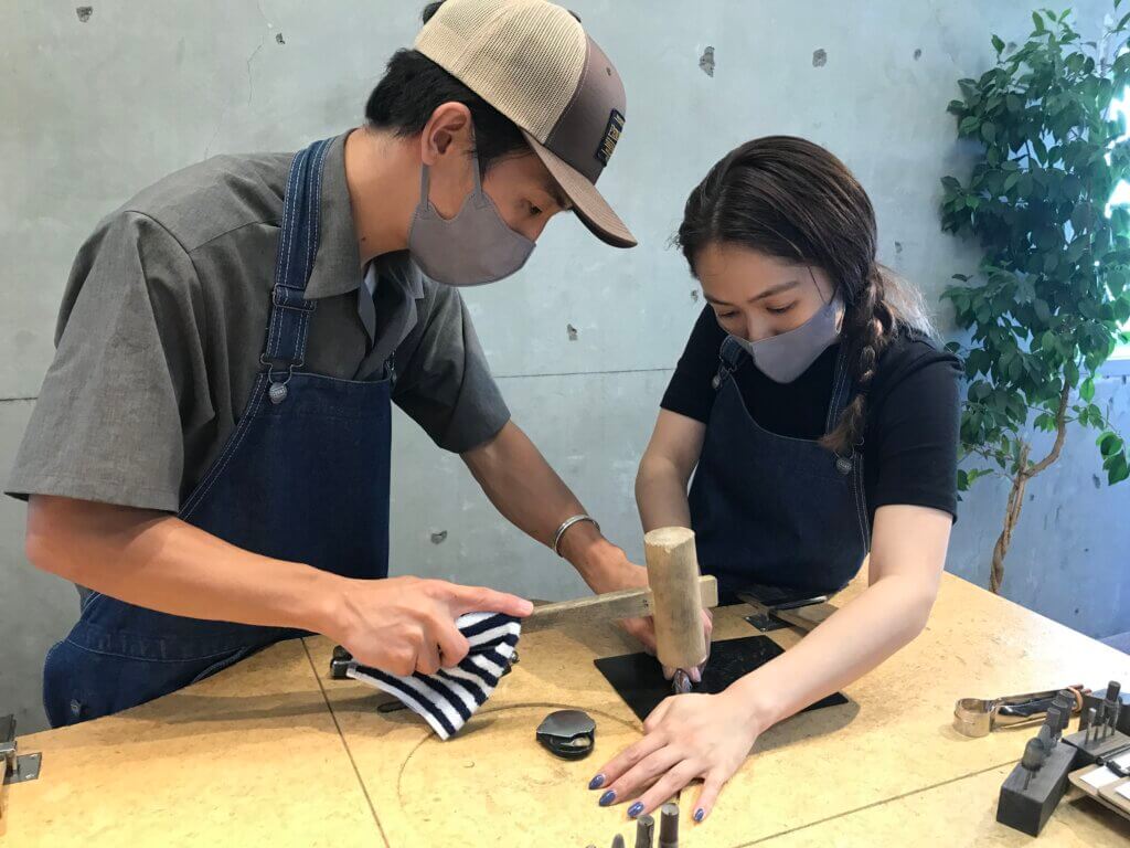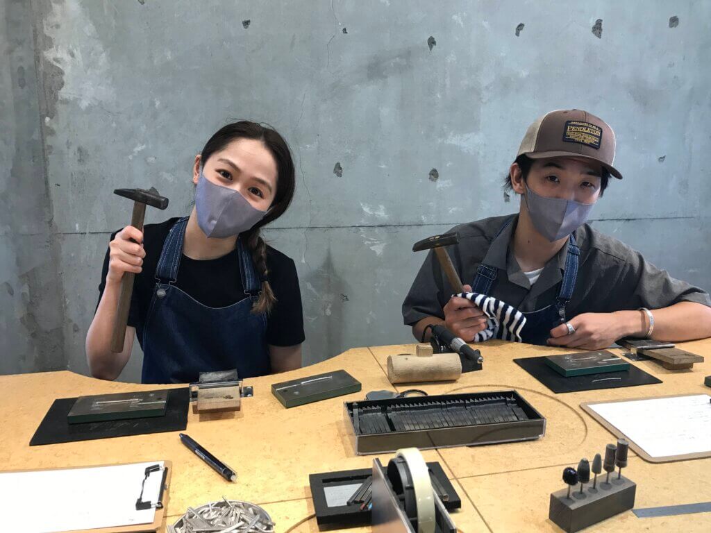 打つ面が平になっている金鎚を使って、刻印を打っていきます。