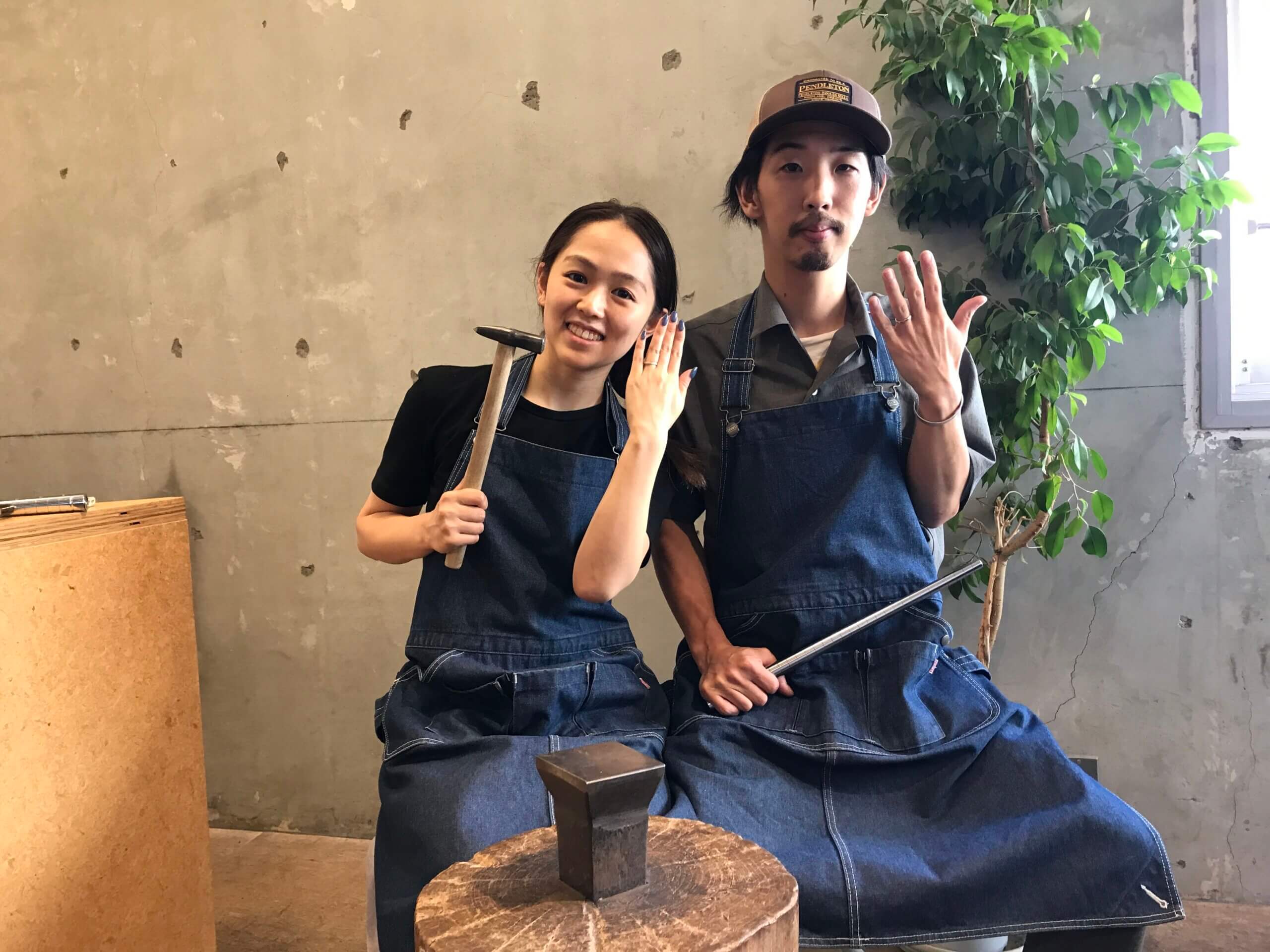 夫婦で結婚指輪を作りました。 素材から色から、悩んで時間がかかってしまいましたが、担当してくださった藤森さんが優しく丁寧に指導してくださり、焦ることなく、とても楽しくじっくり作業ができました。 刻印で失敗しても、すぐにフォローしてくださり、安心してできました♪ 作業中の写真も沢山撮ってくださり、送ってくださいました。いつのまに!?というような作業中のいい写真が沢山で後から見返して楽しめそうです! 自分たちで手作業で作った結婚指輪、大事にします!