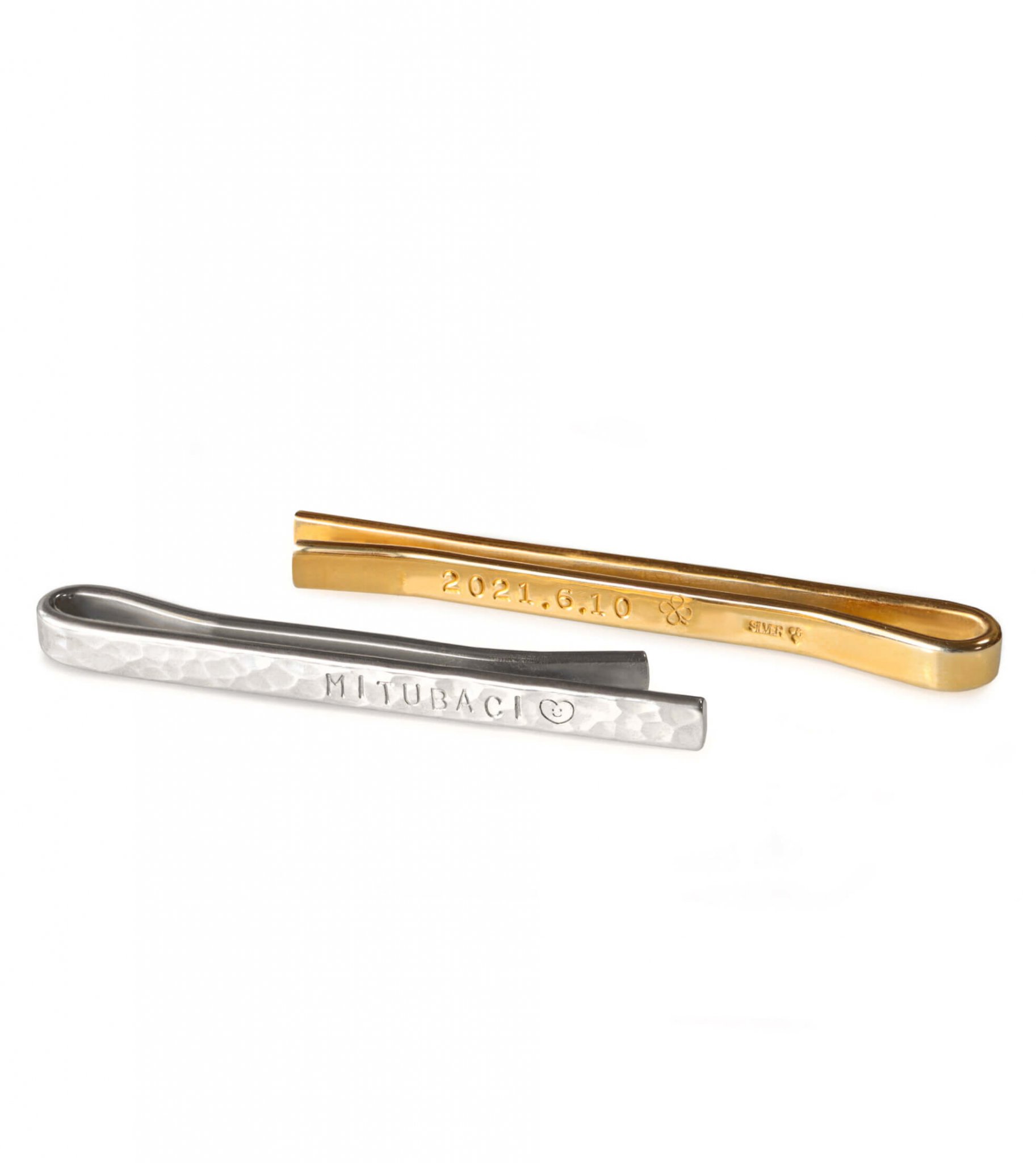 スーツをお洒落に着飾るオリジナルのシルバータイピンをお客様ご自身で制作できるワークショップです。シルバーの角線に表面加工や文字入れを行い、お好みでルビーやサファイアなどを使った石入れ加工を施せます。
