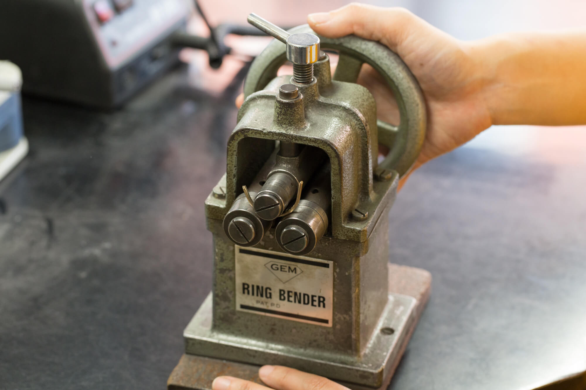 MITUBACIの工房は、お一人様でも、友人同士やカップルで仲良くお作りいただく方にも、様々なユースケースに応える席配置となっています。普段はオーダーメイドジュエリーを手掛ける職人たちが、ご来店の皆様がイメージされる指輪を作るための制作工程を的確にアドバイスいたします。